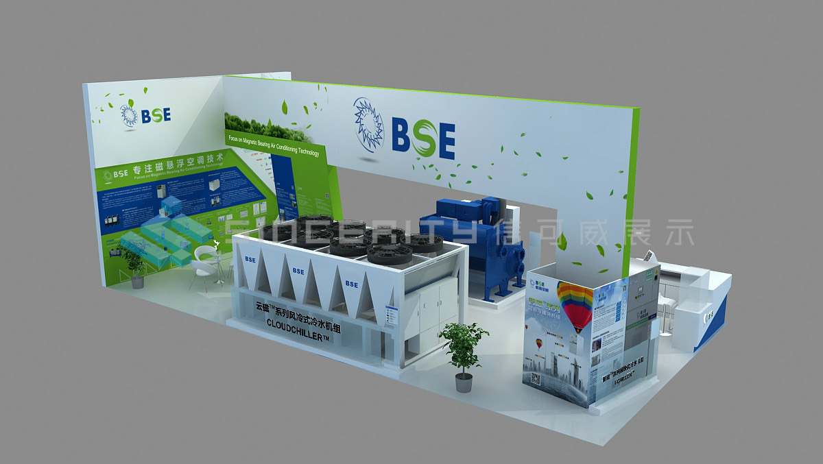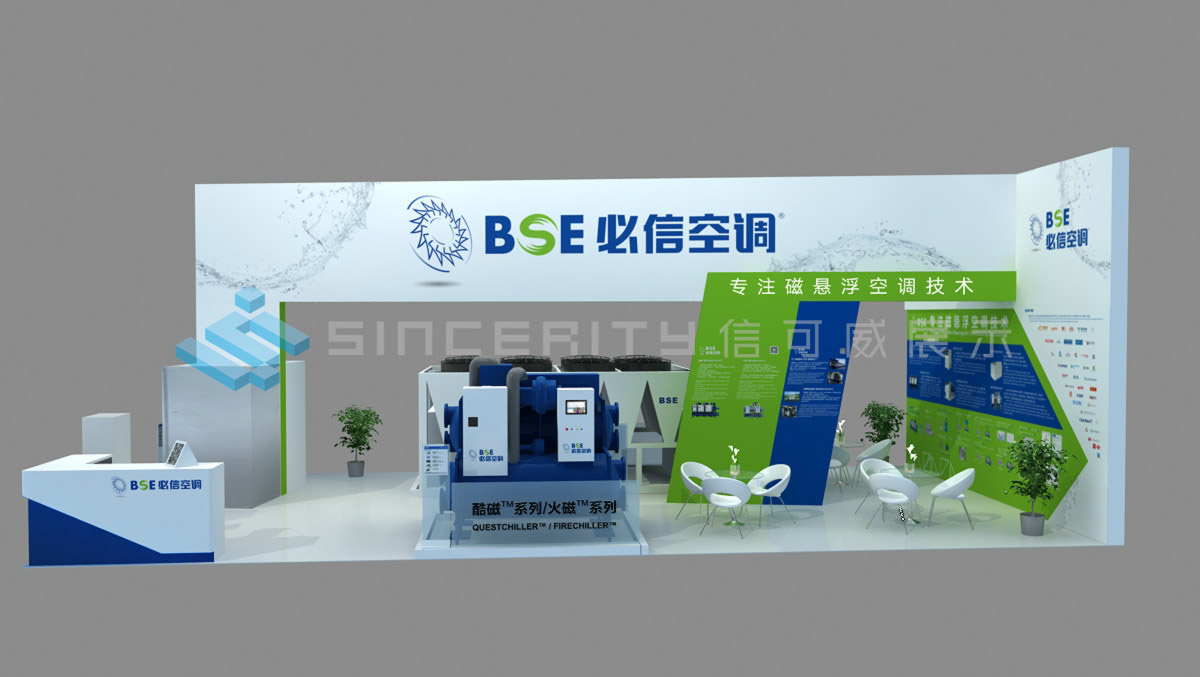 必信空調,蘇州必信空調有限公司位于蘇州高新區科技城,是國內一家專注于磁懸浮空調技術的國家級高新技術企業。必信空調展臺設計融科技、環保于一體,契合必信空調“中國智造”的經營戰略,呼應“新時代、新智造、新征程”主題,折射出高效、節能、環保的產品定位。